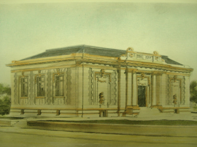 Hand-colored Original Plan. This picture is extremely hard to find, as the American Architect and Building News not only had a very small circulation during that time, but very few were actually preserved or colored as this has been. It measures 13 by 8.75 inches. Has a mat border and foam core backing (not attached to the picture). The whole picture measures 16 by 12 inches (with border). Finely detailed and beautifully hand-colored. Shrink wrapped.