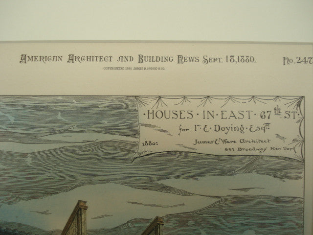 Houses on East 67th Street for I. E. Doying, Esq. , New York, NY, 1880, James E. Ware