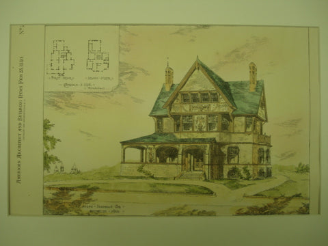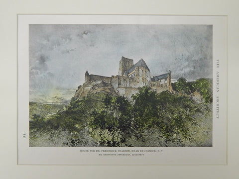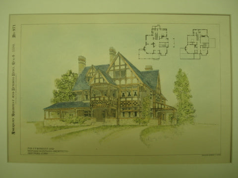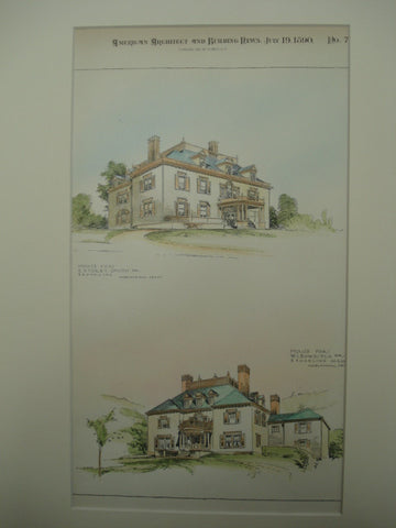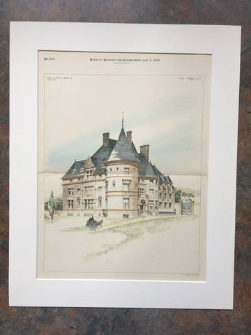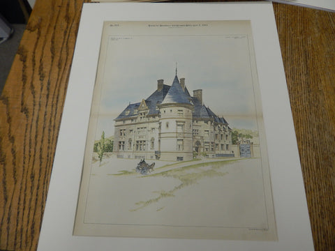 House for E F Burnham, Hartford, CT, 1894, Hapgood, Hand Colored Original -