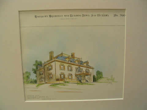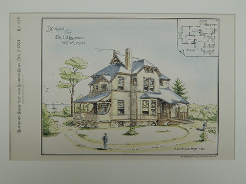 House for E D Jordan, Corey Hill, MA, 1891, Hand Colored Original