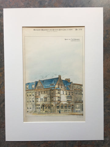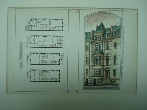 House for E P Bradbury, Marlborough St, Boston, MA, 1886, Original Hand Colored