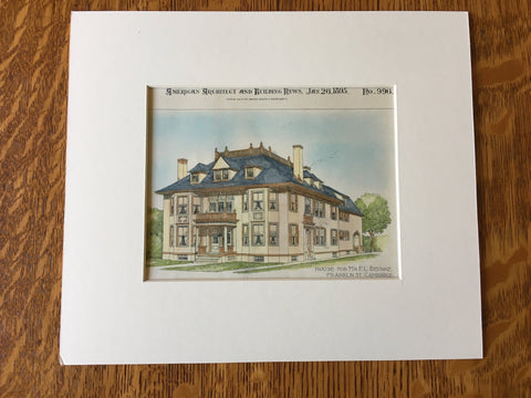 House for F L Beunke, Franklin St, Cambridge, MA, 1895, Original Hand Colored