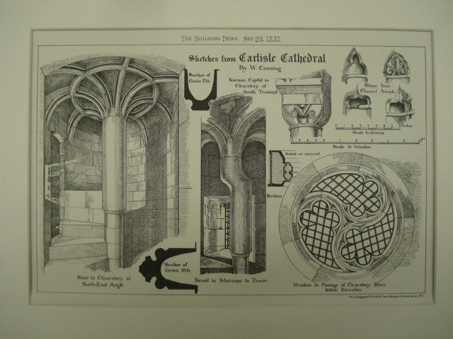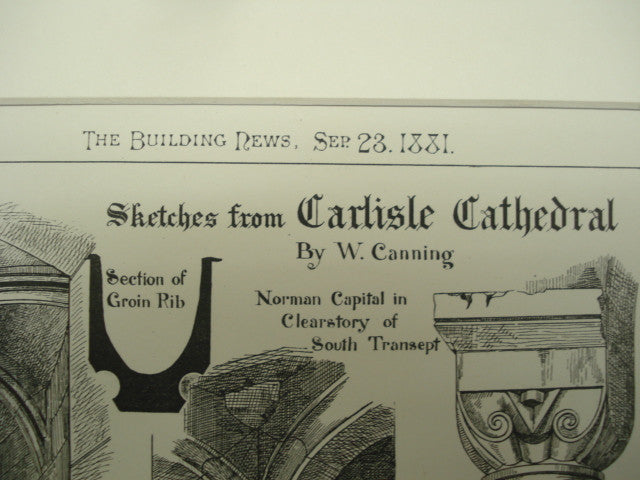 Sketches from Carlisle Cathedral , Carlisle, Cumbria, England, UK, 1881, W. Canning