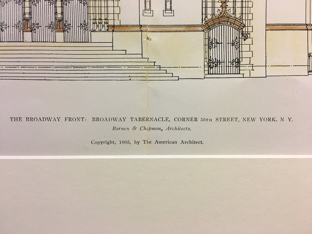 Broadway Tabernacle, 56th St, NY, 1905, Barney & Chapman, Original, Hand Colored