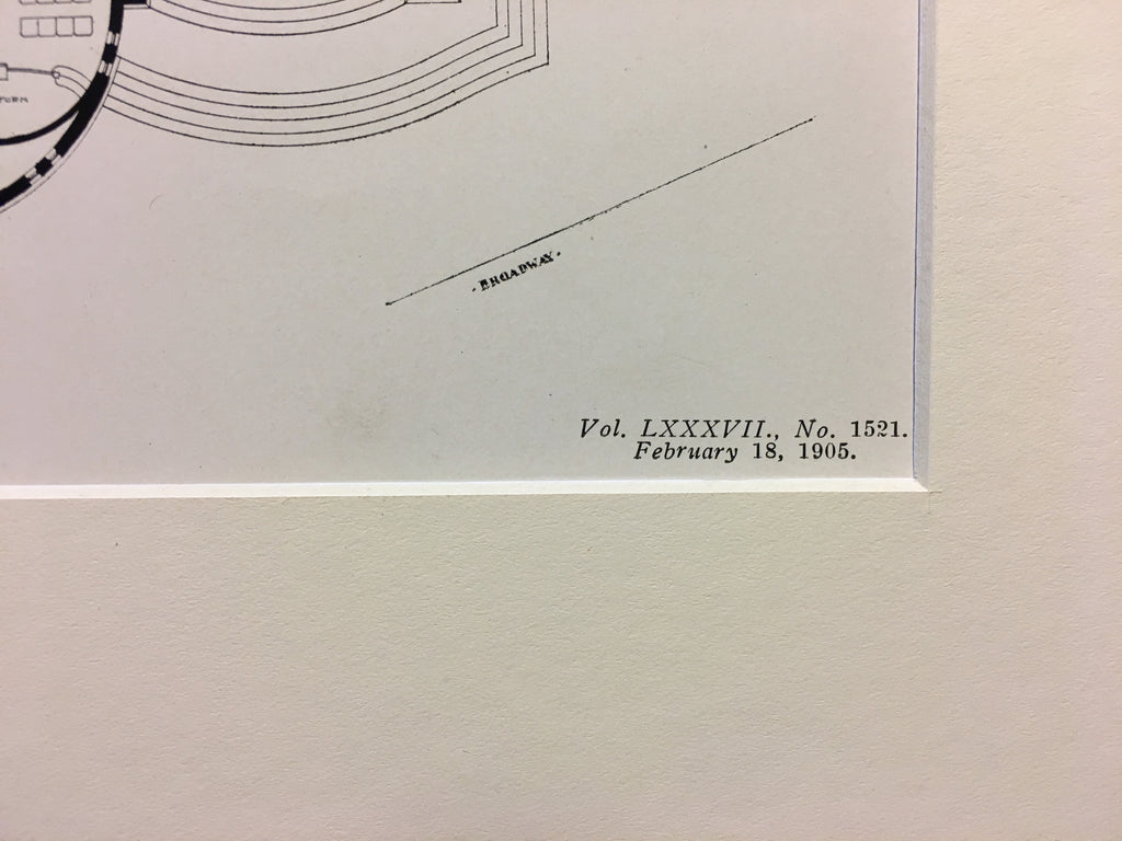 A Beautifully Detailed, Original Plan of the Broadway Tabernacle, Corner of 56th Street, New York. HAND-COLORED. Barney & Chapman, Architect(s). From the American Architect and Building News, February 18, 1905.