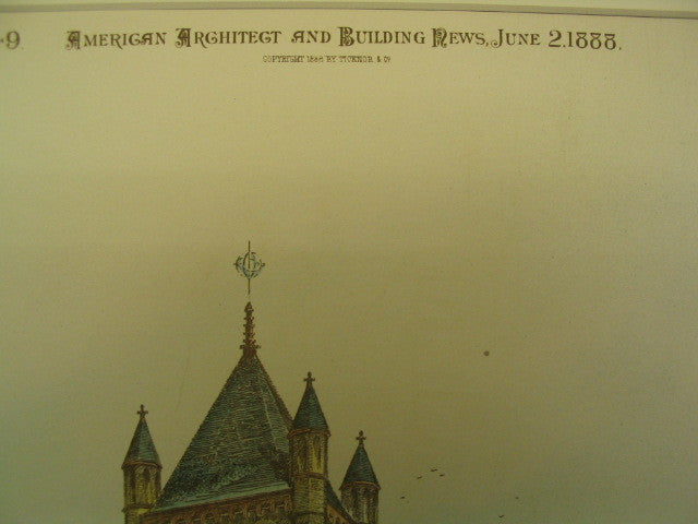 Bruce Price, architect(s). From the American Architect and Building News, June 2, 1888. 8.75 by 13.25 inches. VG+.