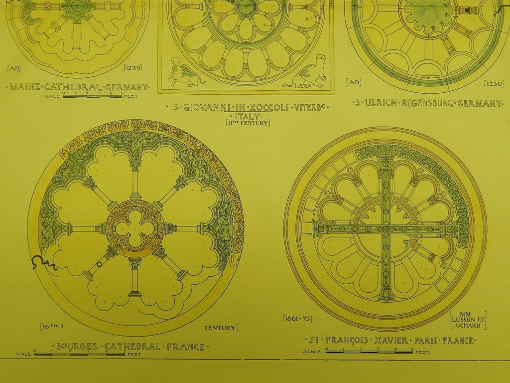 Various European Rose Windows, Bourges Cathedral, France, 1897, Original Plan.
