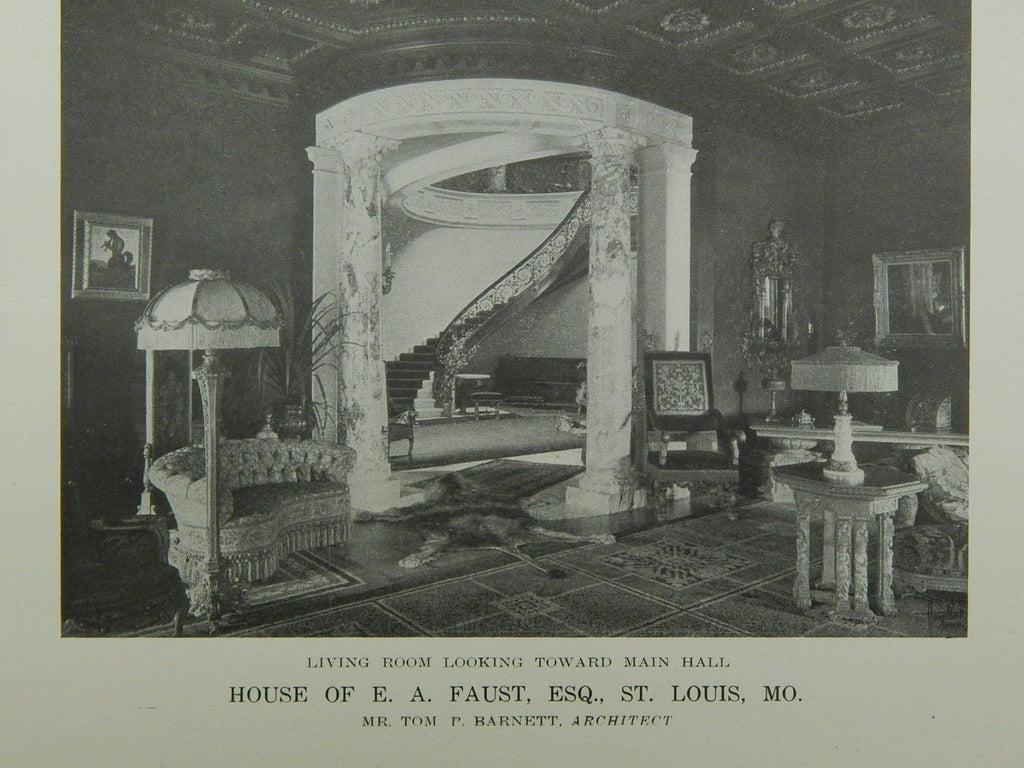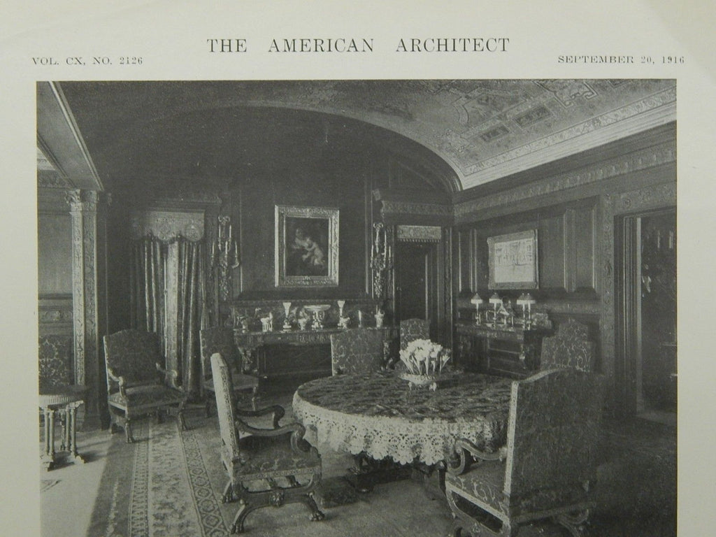 A Beautifully Detailed, Original Lithograph of the Dining Room and Living Room in the House of E. A. Faust, Esq. in St. Louis, Missouri. EARLY PHOTOGRAPH. Tom P. Barnett, Architect. From the American Architect and Building News, September 20, 1916.