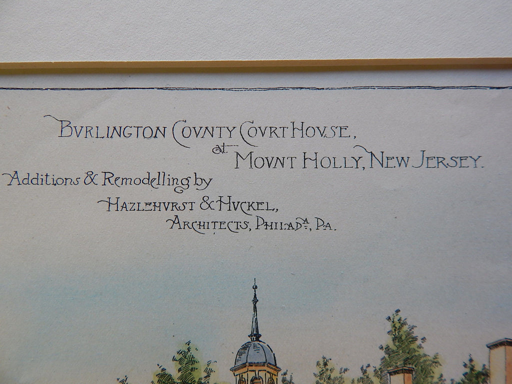 A Beautifully Detailed, Original Plan of the Burlington County Court House, Mount Holly, New Jersey. HAND-COLORED. Hazelhurst & Huckel, Architect(s). From the American Architect and Building News, May 22, 1886.