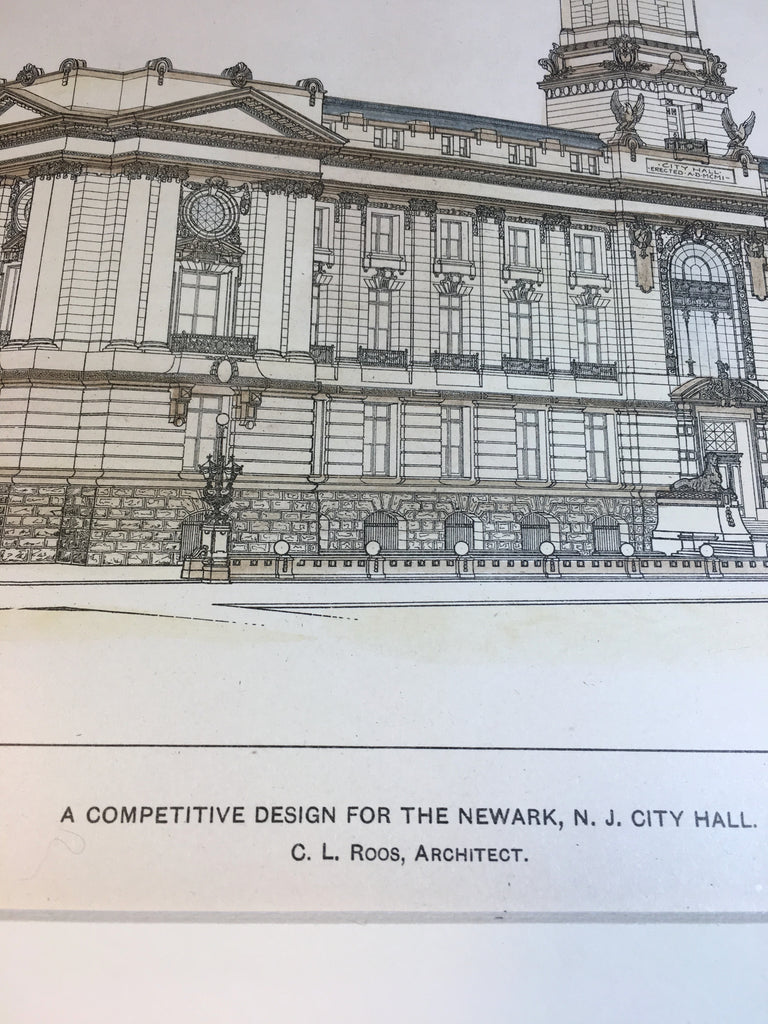 City Hall Design, Newark, NJ, 1901, C L Roos, Original Hand Colored -
