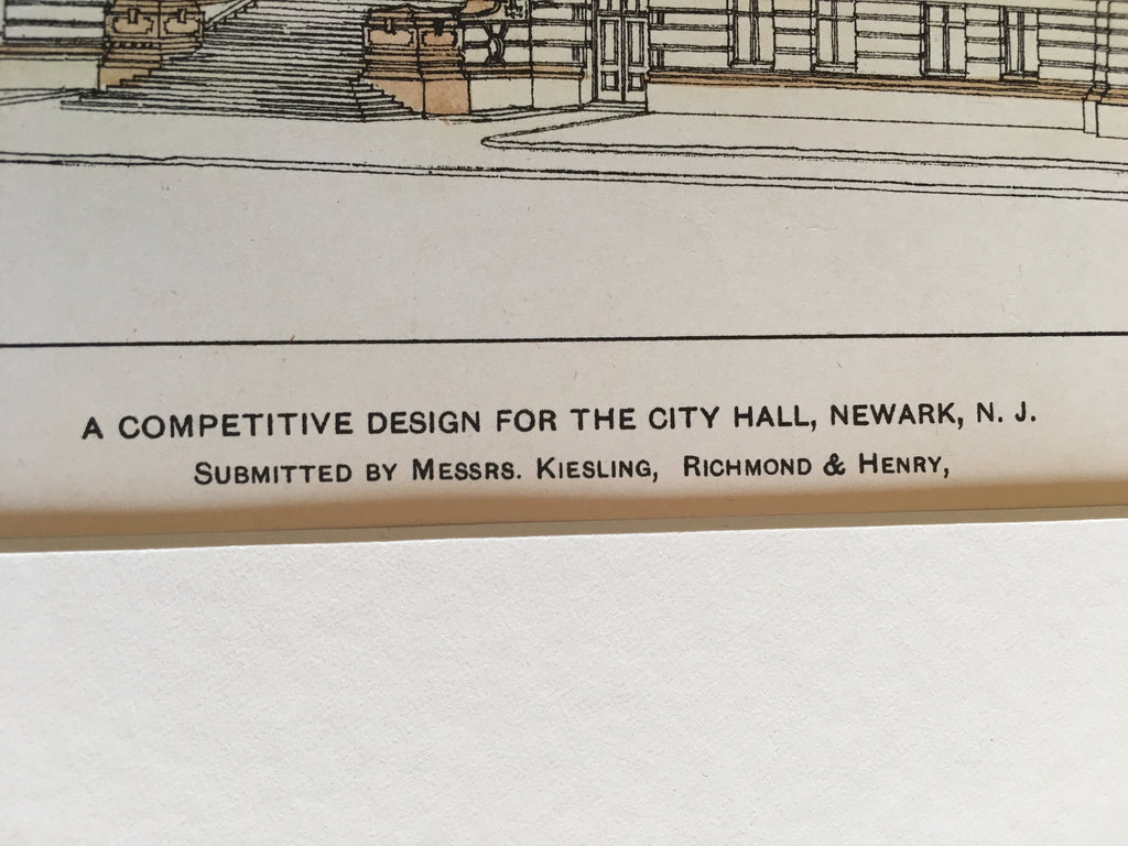 City Hall, Newark, NJ, 1901, Kiesling, Richmond & Henry, Original Hand Colored -