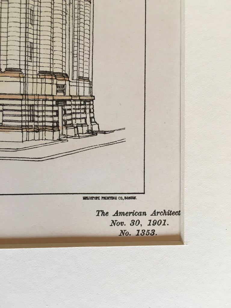 A Beautifully Detailed, Original Plan of the Competitive Design for the City Hall, Newark, New Jersey. HAND COLORED Kiesling, Richmond & Henry, Architect(s). From the American Architect and Building News, November 30, 1901.