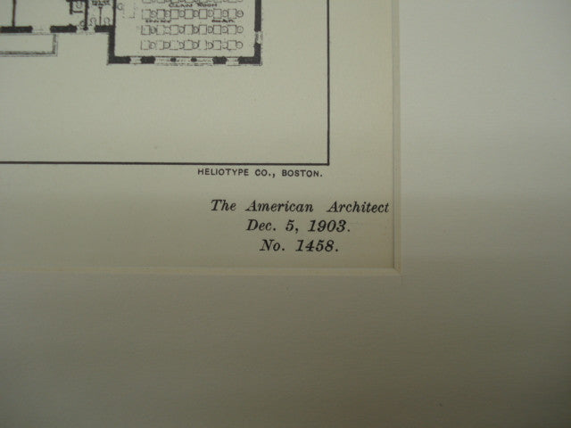 Edgar A. Joselyn, architect(s). From the American Architect and Building News, December 5, 1903. 17.5 by 13.25 inches. VG+ condition with light browning along the edges and some light crinkling.