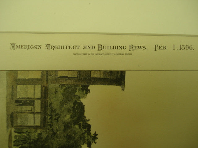 James D. Matthews, architect(s). From the American Architect and Building News, February 1, 1896. 13 by 9 inches. VG+ condition with light browning along the edges and some light crinkling.