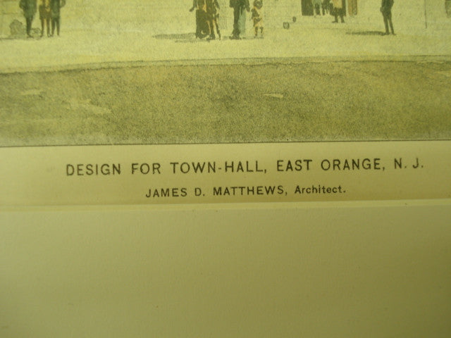 Design for the Town Hall, East Orange, NJ, 1896, James D. Matthews