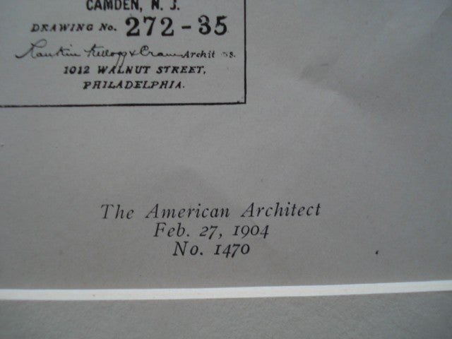 Rankin, Kellogg & Crane, architect(s). From the American Architect and Building News, February 27, 1904. 17.5 by 13 inches. VG+ condition.