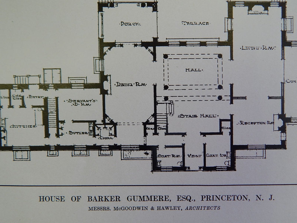 Entryway, House of Barker Gummere, Esq. Princeton, NJ, 1914 Lithograph. McGoodwin & Hawley.