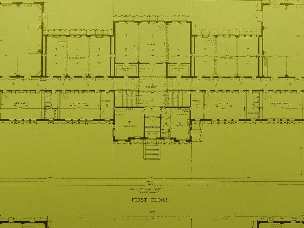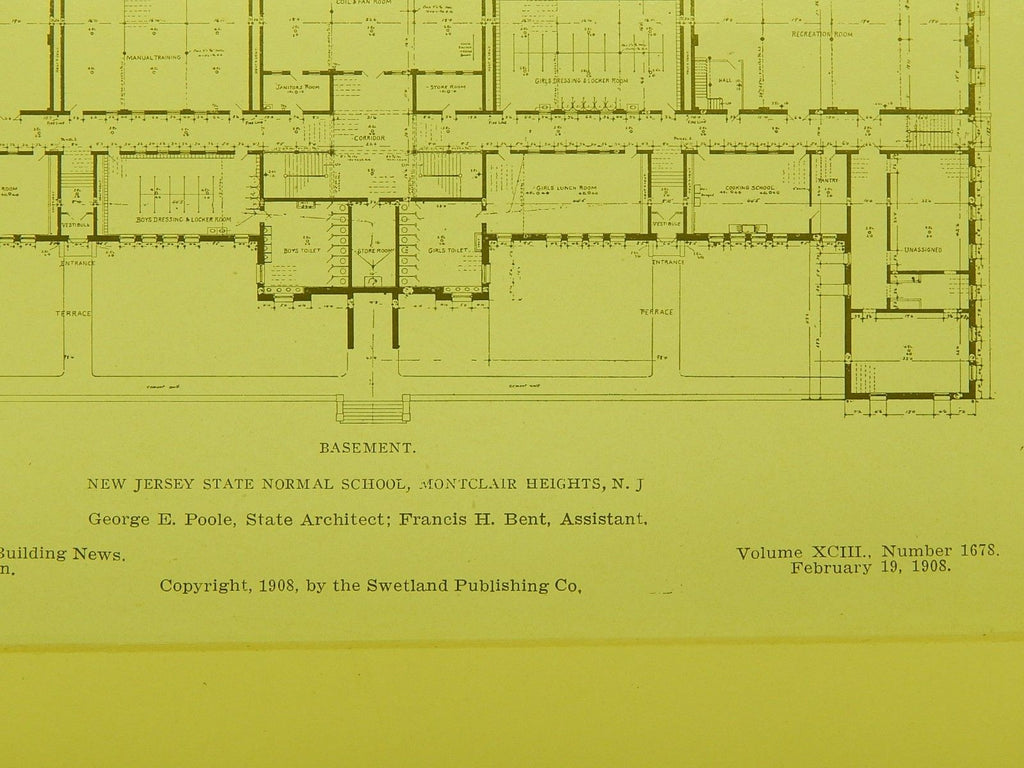 A Beautifully Detailed, Original Plan of the Floors of the New Jersey State Normal School in Montclair Heights, New Jersey. George E. Poole, Architect. From the American Architect and Building News, February 19, 1908.