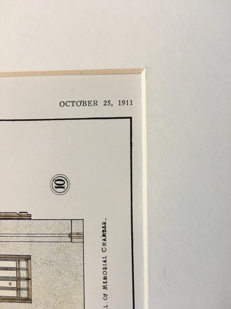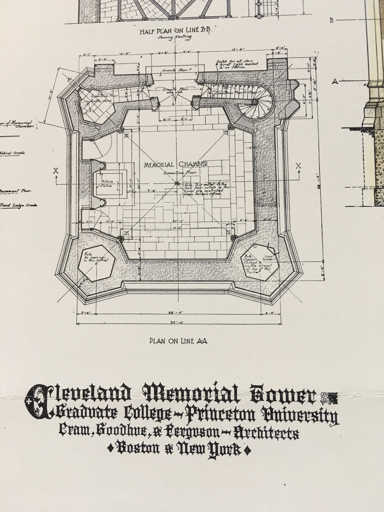 A Beautifully Detailed, Original Plan of the Cleveland Memorial Tower at the Graduate College of Princeton University, Princeton, New Jersey. HAND COLORED Cram, Goodhue & Ferguson, Architect(s). From the American Architect and Building News, October 25, 1911.