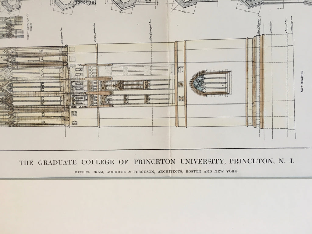 Cleveland Memorial Tower, Graduate College, Princeton University, NJ, 1911, Cram Goodhue Ferguson, Original Hand Colored -