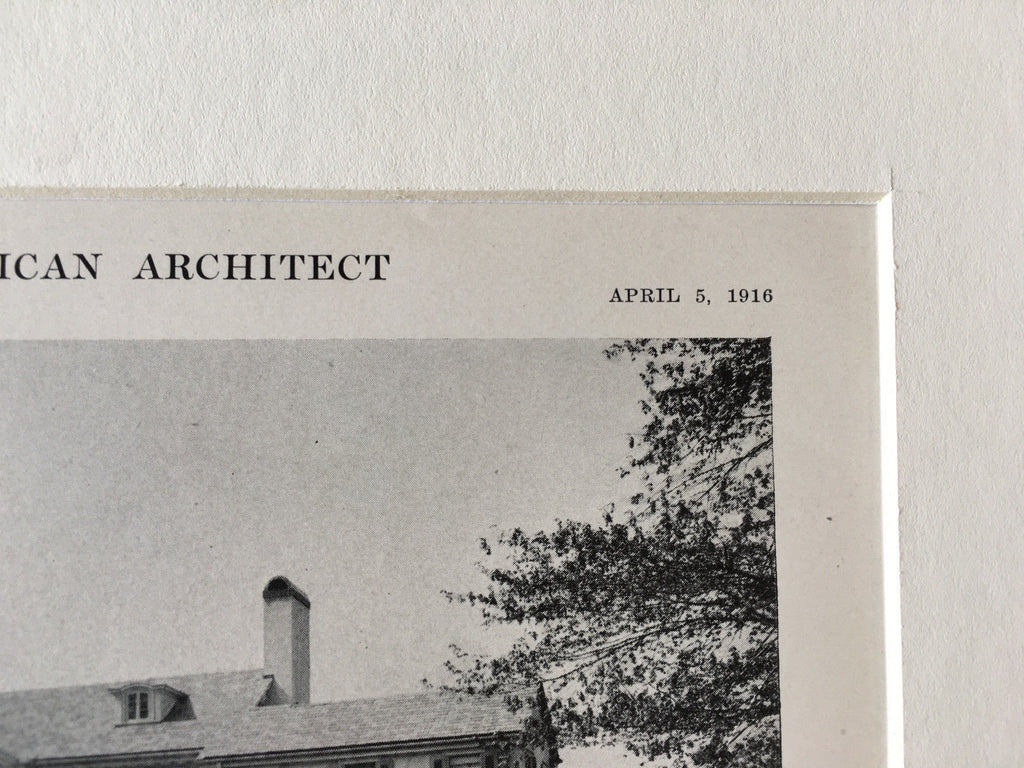 A Beautifully Detailed, Original Lithograph of the H. N. Flanagan, Esq. House, Englewood, New Jersey. EARLY PHOTOGRAPH. Davis, McGrath & Kiessling, Architect(s.) From the American Architect, April 5, 1916.