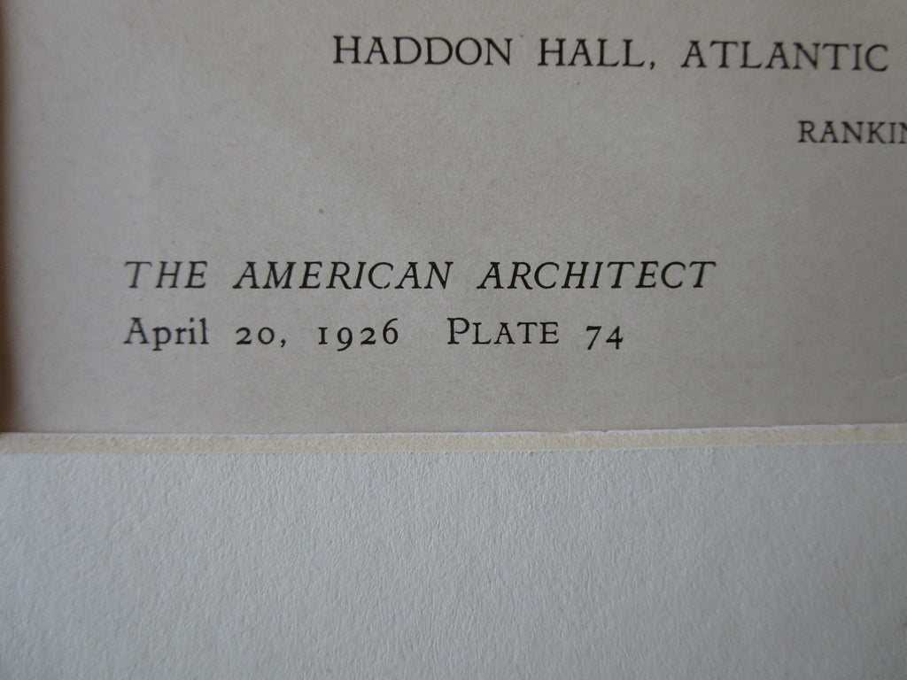 A Beautifully Detailed, Original Lithograph of the Haddon Hall, Cornice Detail and Design Drawing, Atlantic City, New Jersey. EARLY PHOTOGRAPH. Rankin, Kellogg & Crane, Architect(s.) From the American Architect, April 20, 1926.