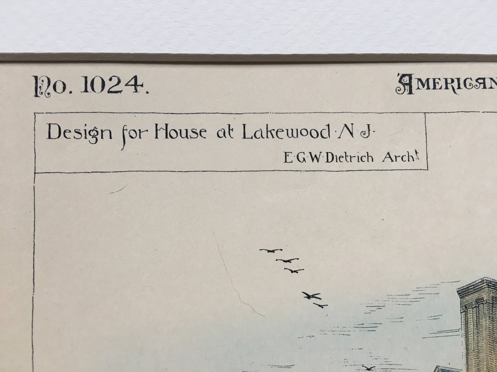 House at Lakewood, New Jersey, 1895, E G W Dietrich, Original, Hand Colored -