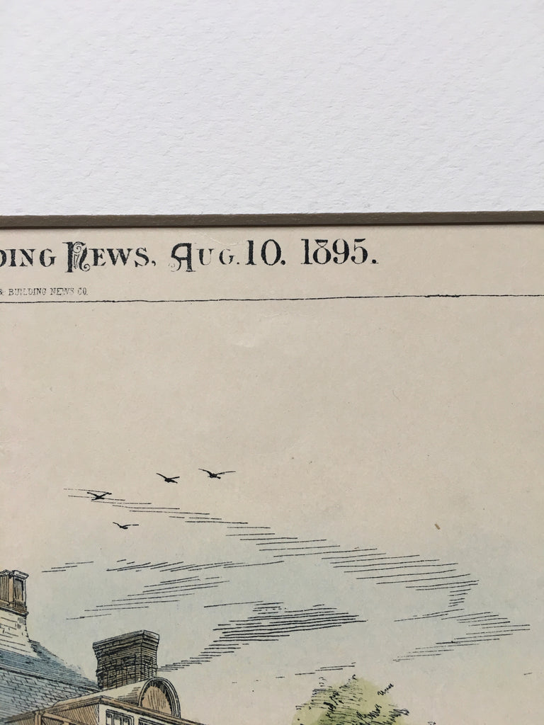 This picture is extremely hard to find, as the American Architect and Building News not only had a very small circulation during that time, but very few were actually preserved or colored as this has been. It measures approximately 12 by 8 inches and has a mat border and foam core backing (not attached to the picture). The whole plan measures approximately 16 by 12 inches (with mat border). Finely detailed and beautifully hand colored. Shrink wrapped.