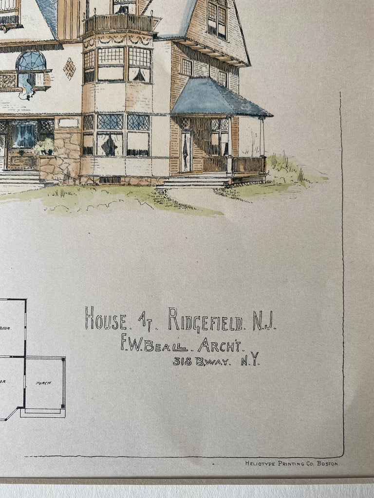 House at Ridgefield, New Jersey, 1891, F W Beall, Original Hand Colored -