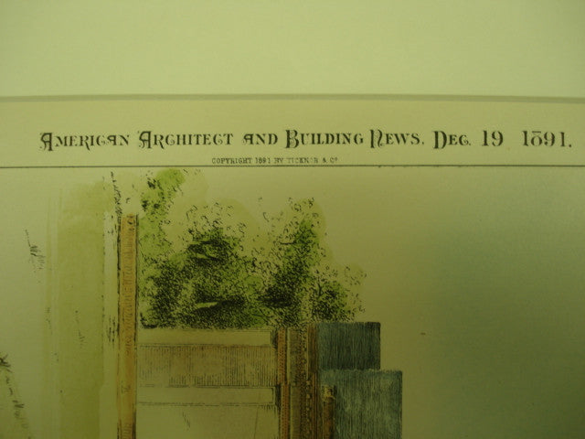 Charles Edwards, architect(s). From the American Architect and Building News, December 19, 1891. 13 by 8.5 inches. VG+ condition with light browning along the edges and some light crinkling.