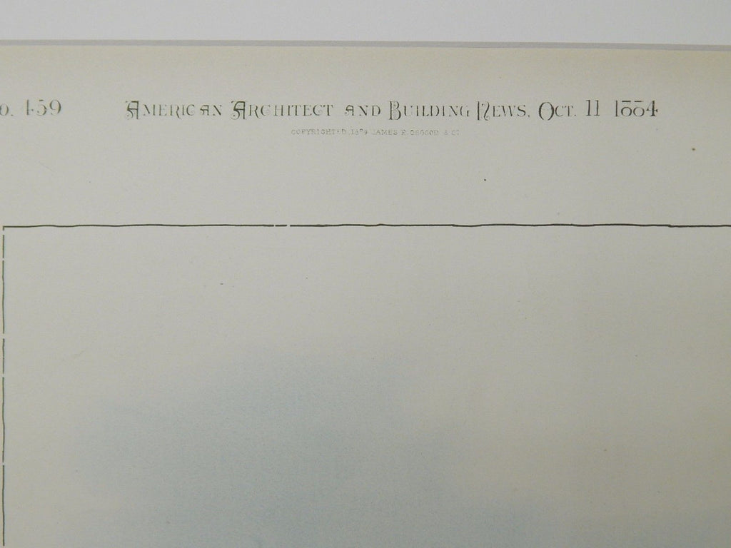 This picture is extremely hard to find, as the American Architect and Building News not only had a very small circulation during that time, but very few were actually preserved or colored as this has been. It measures 12.25 by 8 inches. Has a mat border and foam core backing (not attached to the picture). The whole plan measures approximately 16 by 12 inches (with mat border). Finely detailed and beautifully hand-colored. Shrink wrapped.