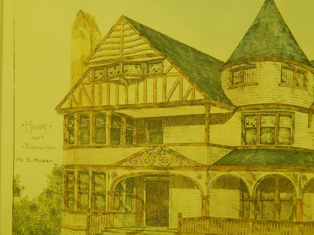 A Beautifully Detailed, Original Plan of the House for Mr. S. Muzzy in Paterson, New Jersey. HAND-COLORED. Charles Edwards, Architect. From the American Architect and Building News, October 11, 1884.