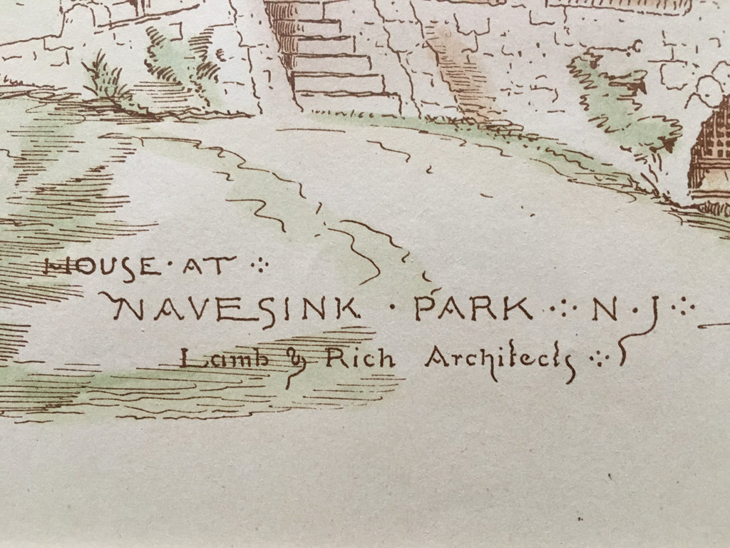 A Beautifully Detailed, Original Plan of the House at Navesink Park, New Jersey. HAND-COLORED. Lamb & Rich, Architect(s). From the American Architect & Building News, July 1, 1882.