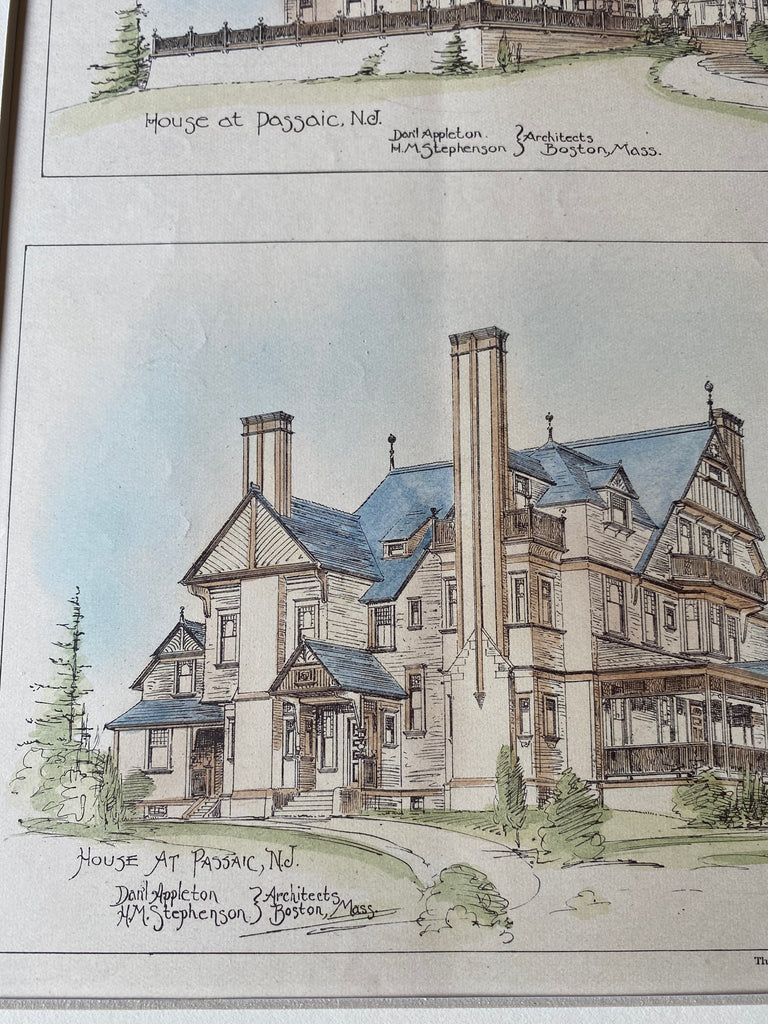Houses at Passaic, NJ, 1884, Appleton & Stephenson, Original Hand Colored -