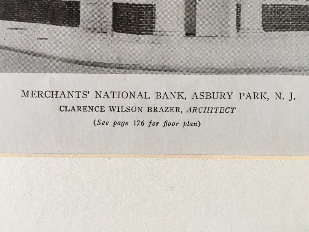 Merchants' National Bank, Asbury Park, NJ, 1919, Lithograph. C.W. Brazer