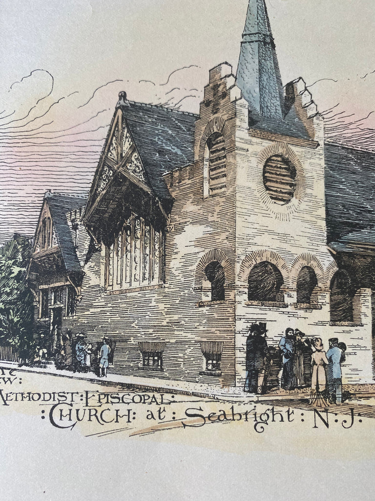 Methodist Episcopal Church, Seabright, NJ, 1889, Original Hand Colored -