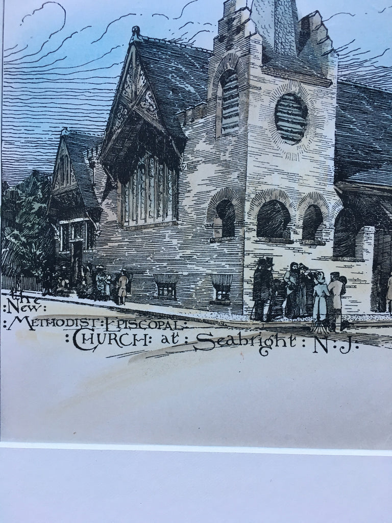 Methodist Episcopal, Seabright, NJ, 1889, Wm B Bigelow, Hand Colored Original
