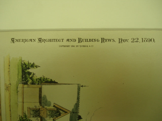Isaac Pursell, architect(s). From the American Architect and Building News, November 22, 1890. 13 by 8.75 inches. VG+ condition.