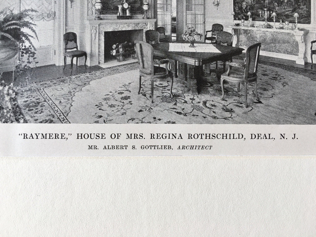 A Beautifully Detailed, Original Lithograph of the House of Mrs. Regina Rothschild, Deal, New Jersey. EARLY PHOTOGRAPH. Albert S. Gottlieb, Architect(s.) From the American Architect, March 15, 1916.