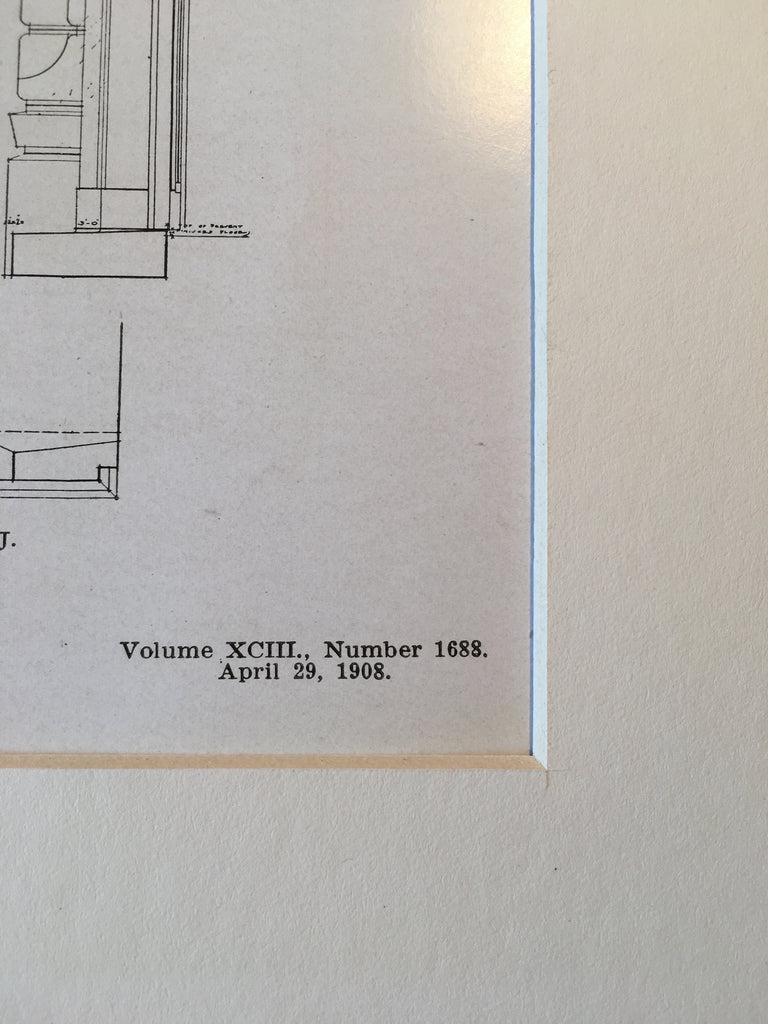 This picture is extremely hard to find, as the American Architect and Building News not only had a very small circulation during that time, but very few were actually preserved or colored as this has been. It measures approximately 12 by 8 inches and has a mat border and foam core backing (not attached to the picture). The whole plan measures approximately 16 by 12 inches (with mat border). Finely detailed and beautifully hand colored. Shrink wrapped.