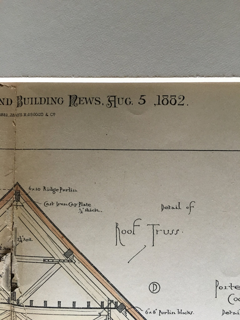 A Beautifully Detailed, Original Plan of the Presbyterian Church, South Orange, New Jersey. HAND-COLORED. Rossiter & Wright, Architect(s). From the American Architect & Building News, August 5, 1882.