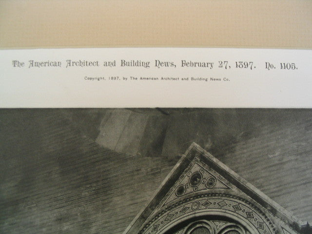 W. A. Potter, architect(s). From the American Architect and Building News, February 27, 1897. 13 by 17.5 inches. VG condition with some spots, some browning around.