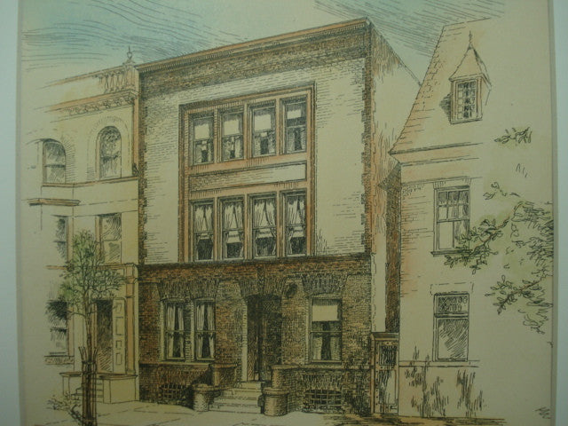 Hand-colored Original Plan. This picture is extremely hard to find, as the American Architect and Building News not only had a very small circulation during that time, but very few were actually preserved or colored as this has been. It measures 13 by 8.5 inches. Has a mat border and foam core backing (not attached to the picture). The whole picture measures 16.5 by 10.75 inches (with border). Finely detailed and beautifully hand-colored. Shrink wrapped.