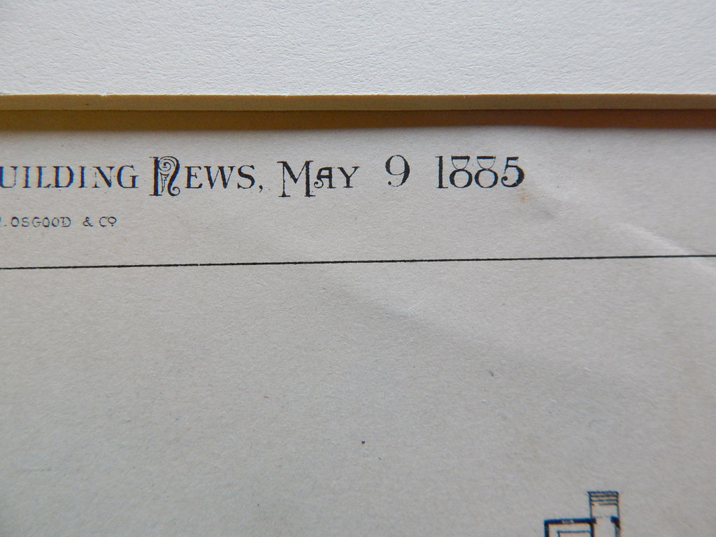This picture is extremely hard to find, as the American Architect and Building News not only had a very small circulation during that time, but very few were actually preserved or colored as this has been. It measures 12 by 8 inches. Has a mat border and foam core backing (not attached to the picture). The whole plan measures approximately 16 by 12 inches (with mat border). Finely detailed and beautifully hand-colored. Shrink wrapped.