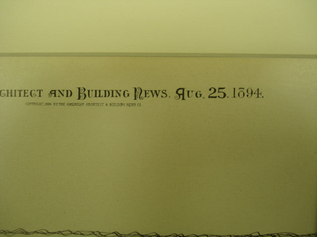 Mackenzie, architect(s). From the American Architect and Building News, August 25, 1894. 13.25 by 8.75 inches. VG+ condition with light browning along the edges .