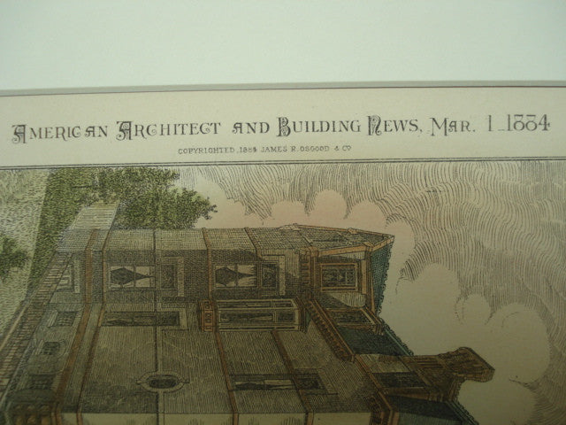 Paul G. Botticher, architect(s). From the American Architect and Building News, March 1, 1884. 9 by 6.75 inches. VG+ condition.