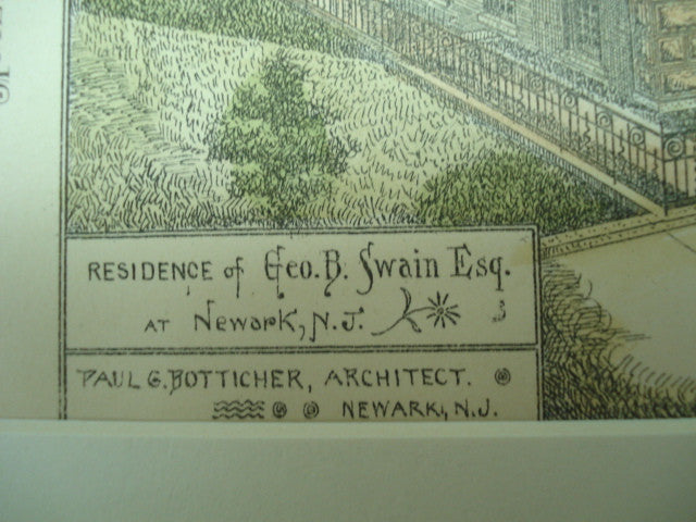 Residence of Geo. B. Swain, Esq. , Newark, NJ, 1884, Paul G. Botticher