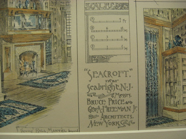 Hand-colored Original Plan. This picture is extremely hard to find, as the American Architect and Building News not only had a very small circulation during that time, but very few were actually preserved or colored as this has been. It measures 12.75 by 16.75 inches. LARGE PICTURE. Has a mat border and foam core backing (not attached to the picture). The whole plan measures approximately 14.5 by 20.25 inches (with mat border). Finely detailed and beautifully hand-colored. Shrink wrapped.