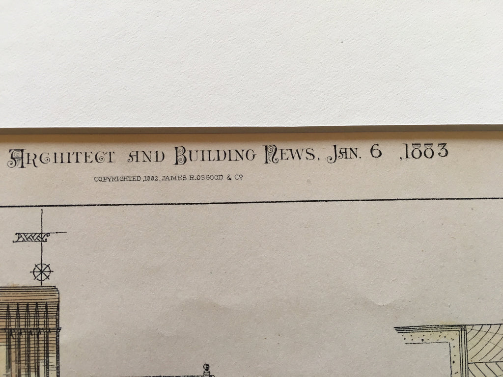 A Beautifully Detailed, Original Plan of 'Seacroft' near Seabright, New Jersey. Exterior details. HAND-COLORED. Bruce Price & George A Freeman, Architect(s). From the American Architect & Building News, January 6, 1883.