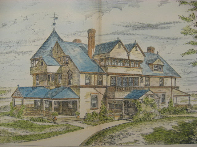 Hand-colored Original Plan. This picture is extremely hard to find, as the American Architect and Building News not only had a very small circulation during that time, but very few were actually preserved or colored as this has been. It measures 17.75 by 13.25 inches. LARGE PICTURE. Has a mat border and foam core backing (not attached to the picture). The whole plan measures approximately 19.25 by 16 inches (with mat border). Finely detailed and beautifully hand-colored. Shrink wrapped.